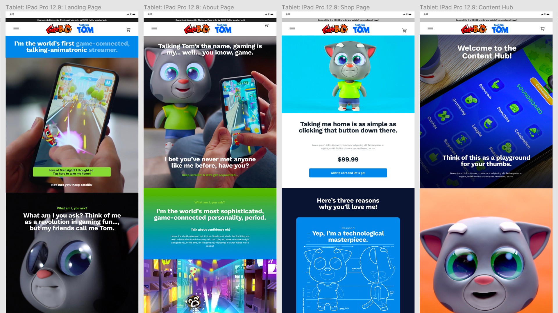 Huge! Play approached Margle with the challenge of launching the top tech toy of this decade. GameBud Talking Tom is a talking, game-connected animatronic streamer that learns and interacts with you online and offline. It's seriously cool and hilarious. Not the slightest bit of creepy either (in case you were wondering)...