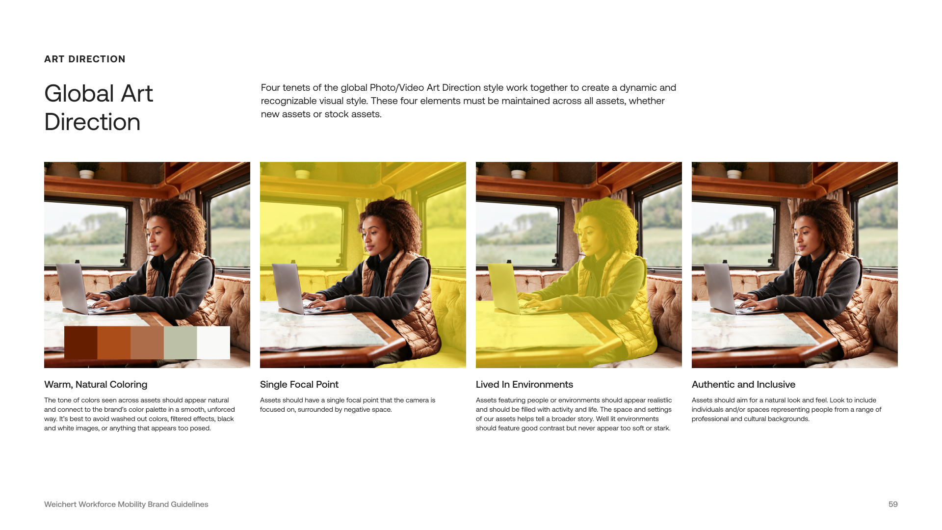 Our mission was to create a bulletproof set of visual guidelines to help the global Weichert Workforce Mobility organization support their brand voice, look, tone, and feel.